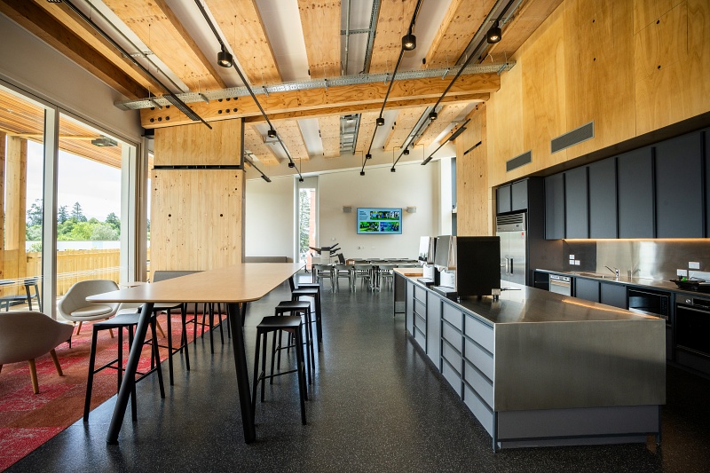 Energy efficiency is a priority at Te Whare Whakatere, with features such as heat pumps utilising water from artesian wells, a Building Management System for monitoring energy usage, solar shading, and an adaptive LED lighting system that adjusts according to occupancy and natural light levels.